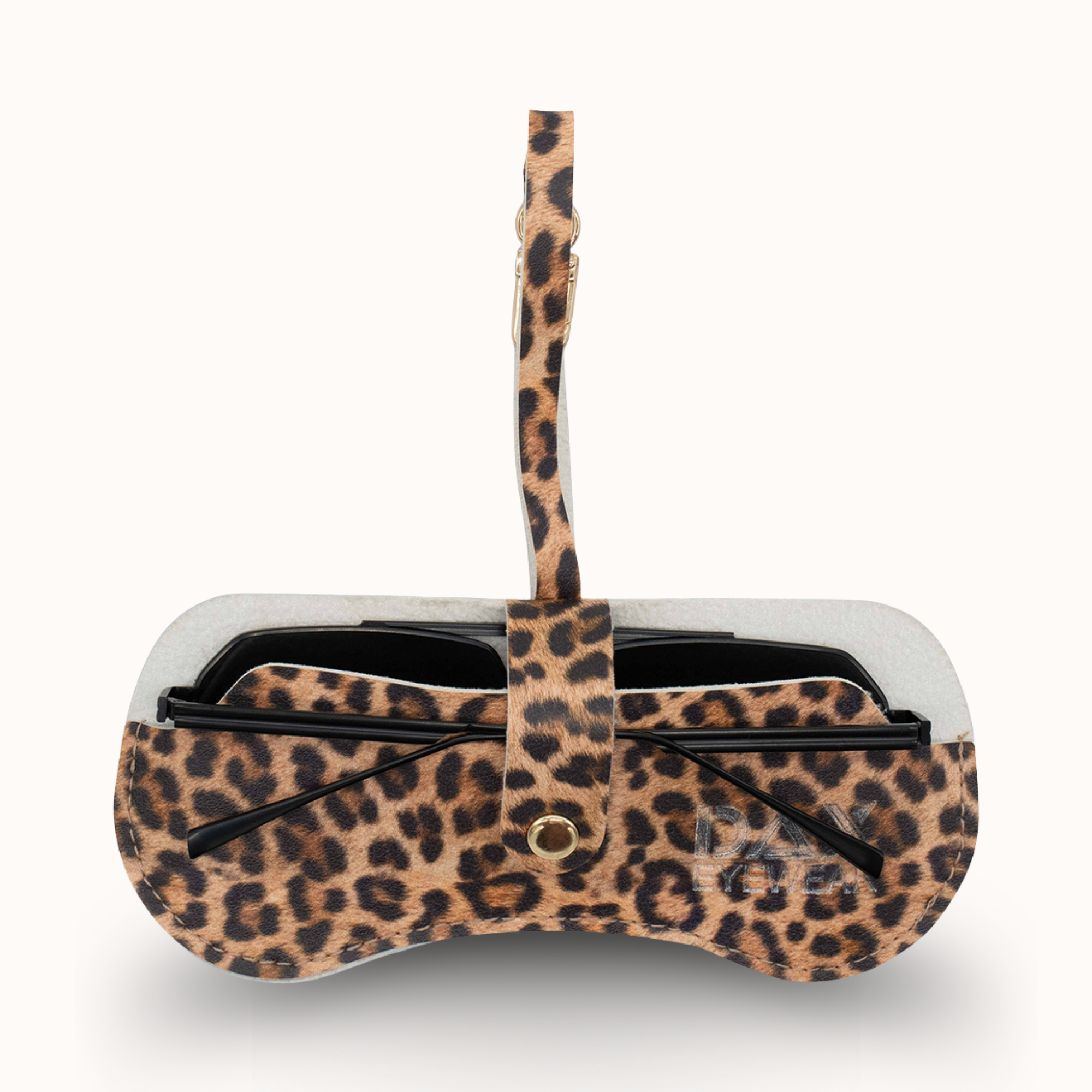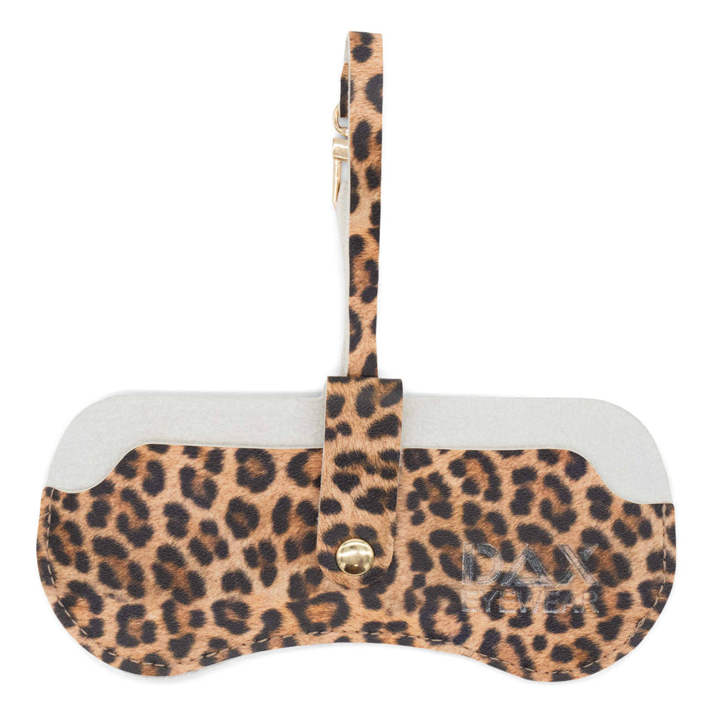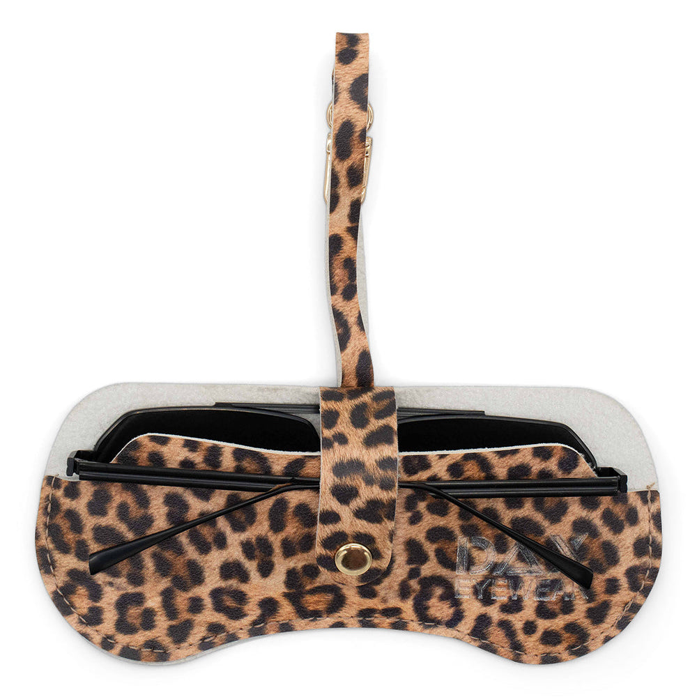 - Eyewear Clutch in Cheetah - Elegant Cheetah Print Clutch crafted from vegan leather, accented with gold-tone clip and snap hardware.